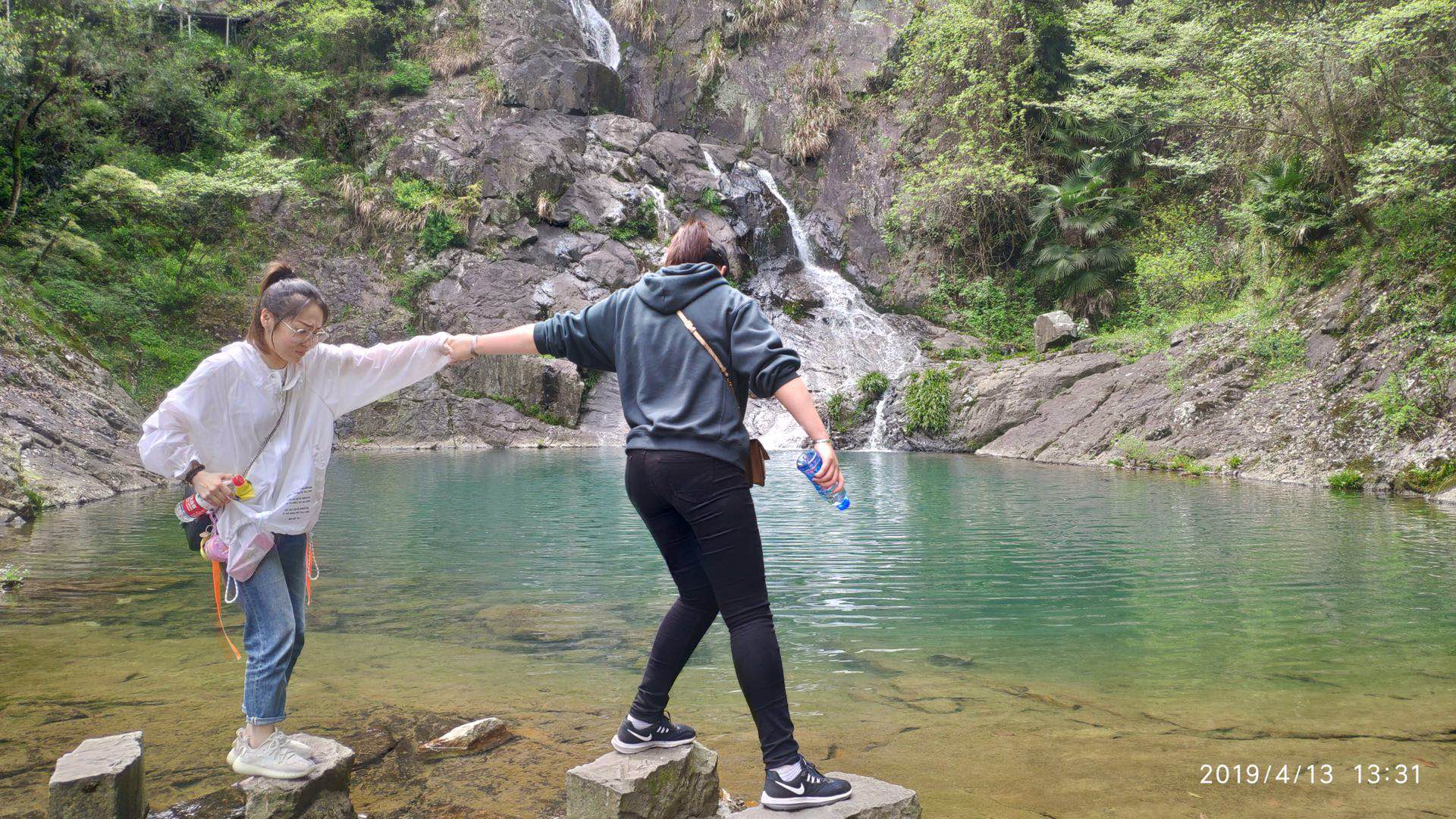 丹山赤水,地處四明山腹地,氣候宜人,對遠道而來的小伙伴們來說,自然是一處不容錯過的景色。大家以一片村宅為起始點,開始徒步前行。一路途經不同的景點,在秋雨坪拜讀文化學者余秋雨的作品;在赤水橋觀賞石拱橋精湛的工藝;在丹湫谷的參天大樹中穿行,越過清澈碧綠的溪湖;從飛瀑的書法中領會中國道教的魅力;在沈氏宗祠感受村落文化的內涵;甚至在同心古井掬一捧清涼透徹的井水……