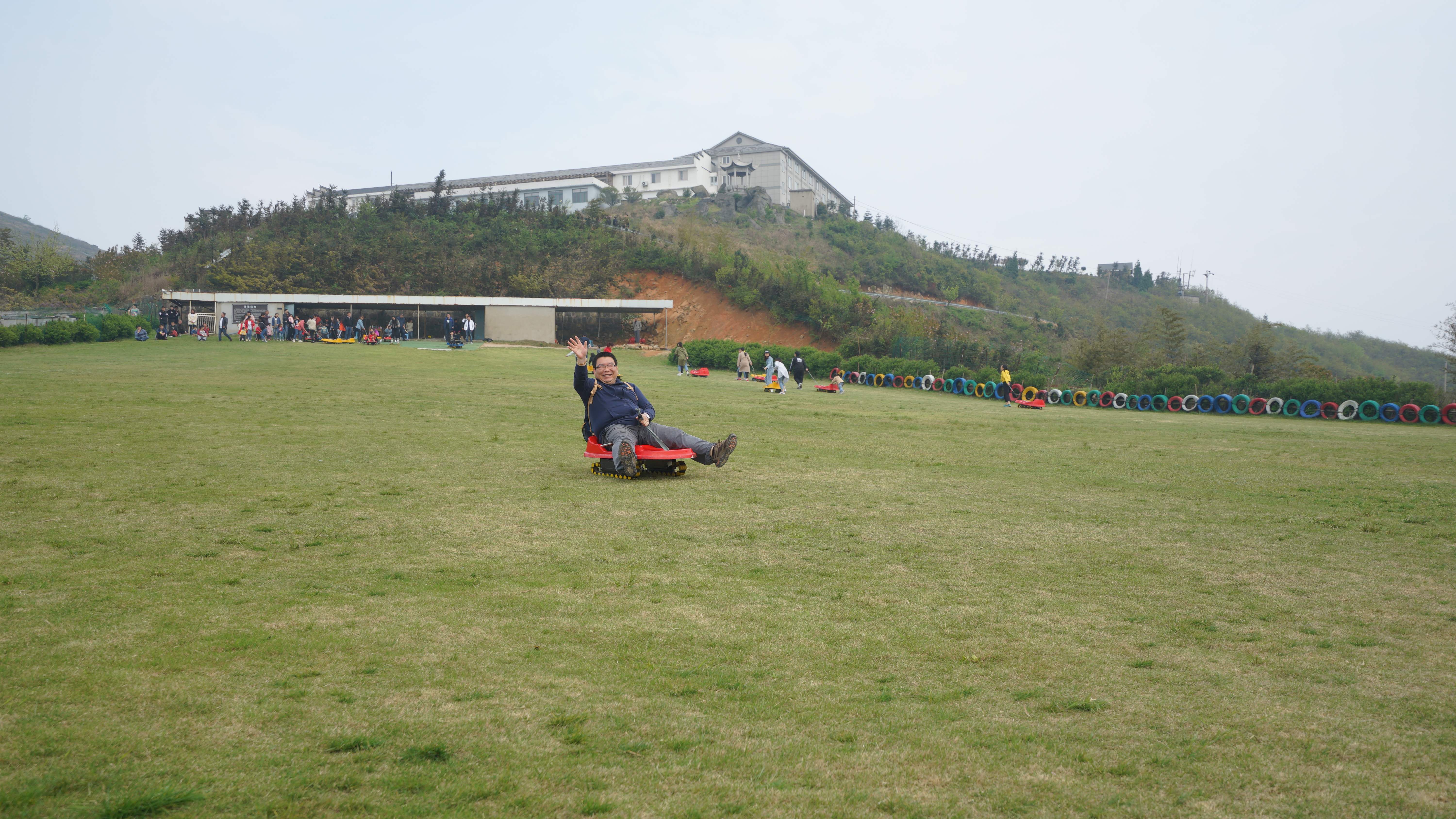結束驚險的石浪挑戰,小伙伴們前往附近的滑草場,體驗滑草帶來的風馳電掣。小伙伴們懷著緊張雀躍的心情,坐上滑板車,舒展雙腳,拉緊繩子,一鼓作氣地從上坡沖下,耳邊聽到的是呼呼的風聲,還有大伙兒高興的歡笑聲。